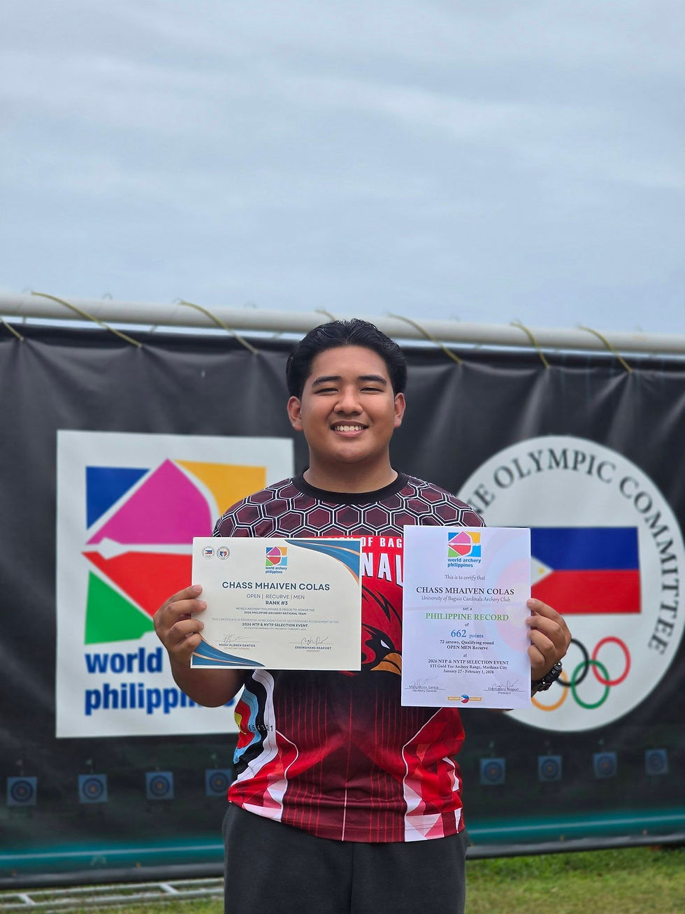 At just 17 years old, Chass stepped into the Open category at a national-level competition and delivered an impressive 662 points at 70 meters, setting a new Philippine Youth Archery Record. Competing against older and more experienced archers, he showed composure, stability, and belief in his process.